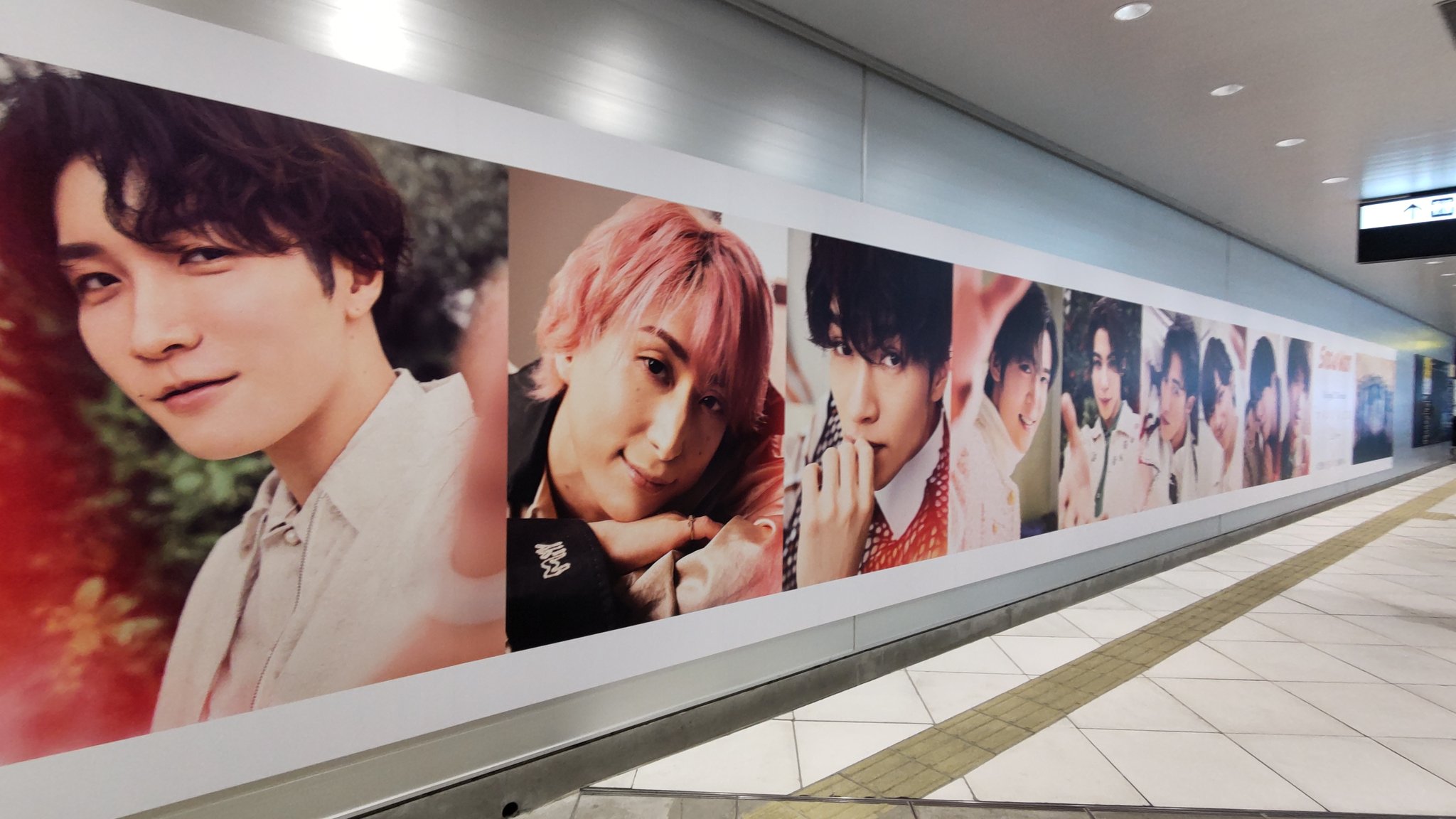 渋谷駅に映画「モエカレはオレンジ色」主題歌「オレンジkiss」(SnowMan)広告が掲示されています。